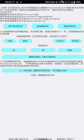 uc画质库是一款实用性特别强的画质优化软件。小编这次带来的是代码大佬针对锁帧数的和平精英专门的解锁助手,真正实现了一键解锁HDR最高清画质和120帧流畅画面。助手工具安全不封号,请大家放心使用,而且包存小帮会对手机内存造成伤害,兼容性强不会黑屏闪退,适合吃鸡技术党。需要的赶快下载试试吧。